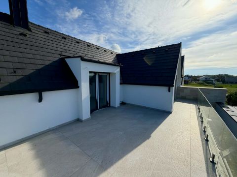 A felső szinten két hálószoba .14,02 m² és 15,70 m², figyelembe véve a hasznos alapterületeket is a tetőtéri kialakítás miatt. Ezen a szinten két fürdőszoba 6,10 m² és 6,43 m², egy gardrób 4,43 m², valamint egy tágas lakó előtér és lépcső 14,04 m² található. A felső szinthez egy 7,94 m²-es erkély és egy 35,81 m²-es tetőterasz is tartozik, amelyek tovább erősítik a panorámás élményt.