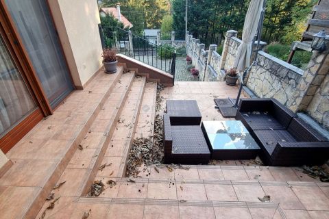 Egy udvar a természetbe vágyóknak: A ház bejáratánál már rögtön egy nagy nyitott terasz vár ránk, azonban ha hátramegyünk a kertbe, akkor egy erdő által körülölelt, fedett, hatalmas teraszra érkezünk, kemencével, grillel. A 600 nm-es udvaron belül egy kapun át a vendégházhoz jutunk, aminek intim, hangulatos kertjében a pavilonban ülve várhatjuk, hogy a legfinomabb falatok a bográcsban elkészüljenek.