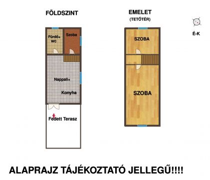 -A földszinten egy nappalikonyha, egy félszoba, valamint egy fürdőszoba WCvel kapott helyet, jól használható elosztásban.