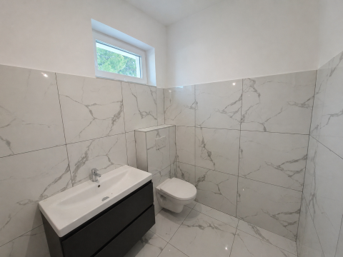A szobák burkolata laminált padló, a többi helyiségben igényes járólap került lerakásra.