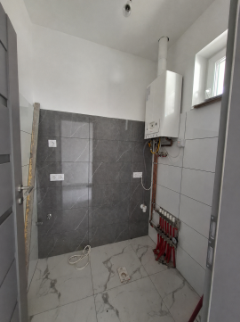 A házban egy kádas fürdőszoba WC-vel, külön mellékhelyiség, valamint egy praktikus háztartási/tároló helyiség is helyet kapott, így a mindennapi működés kényelmesen és jól szervezhető. A beépített konyhabútor a vételár részét képezi, így ezzel sem lesz már plusz teendő.
